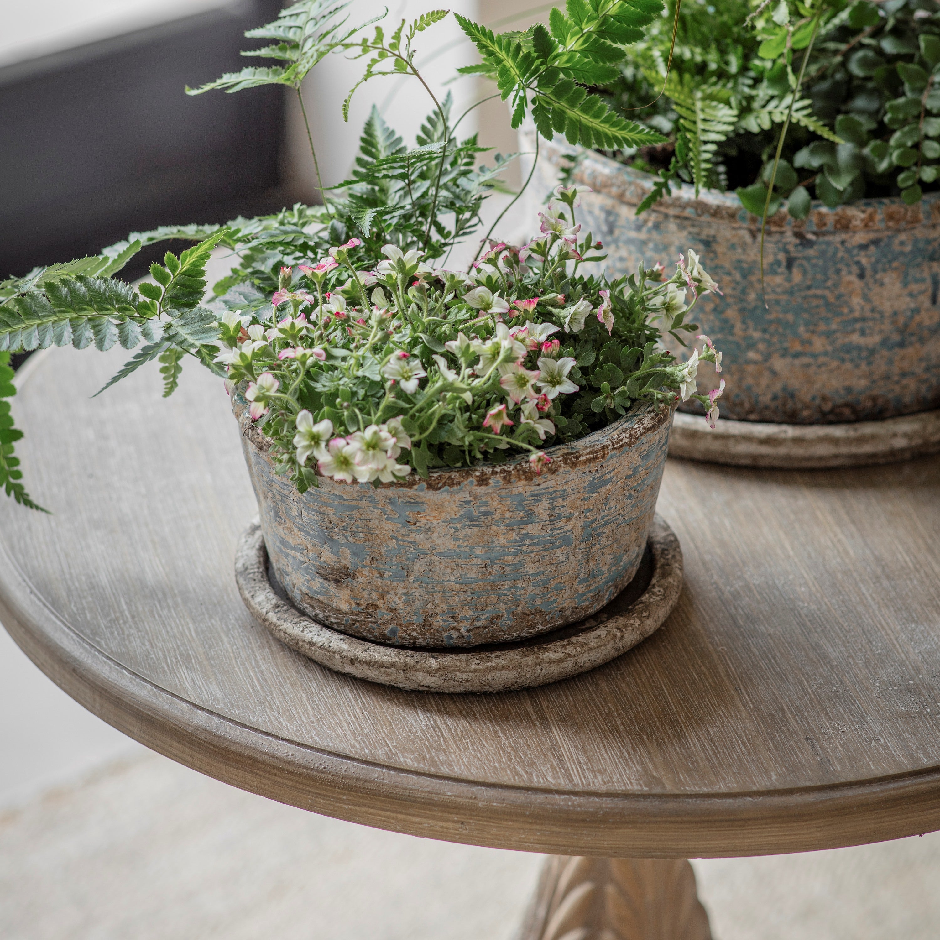 Earthy Blue TonesBring a touch of rustic charm to your home with the Corsley Planter, available in Small or Large. Featuring a beautifully weathered finish in earthy blue tones, these planters add character and warmth to any space. Each planter comes complete with a matching saucer, offering both style and practicality for your favourite plants.