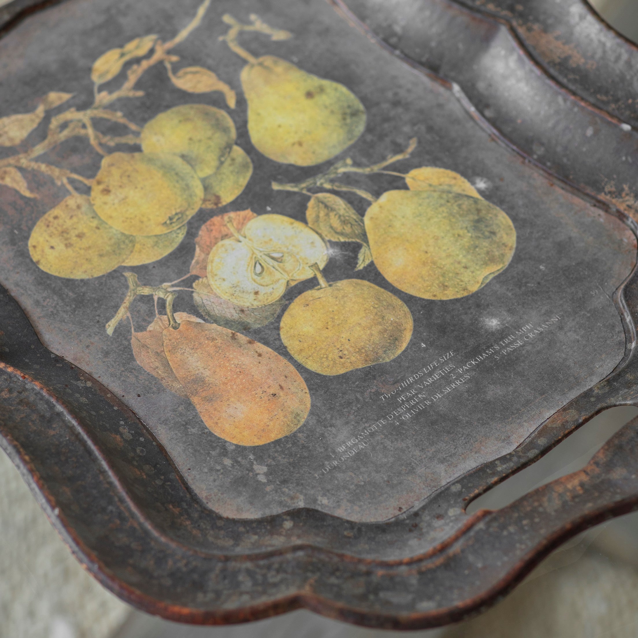 Featuring an elegantly scalloped metal frame and a beautifully aged fruit motif, this tray is a stunning blend of rustic character and timeless appeal. Perfect for serving drinks, displaying candles, or styling on a coffee table, its weathered finish and intricate detailing make it a versatile accent piece.