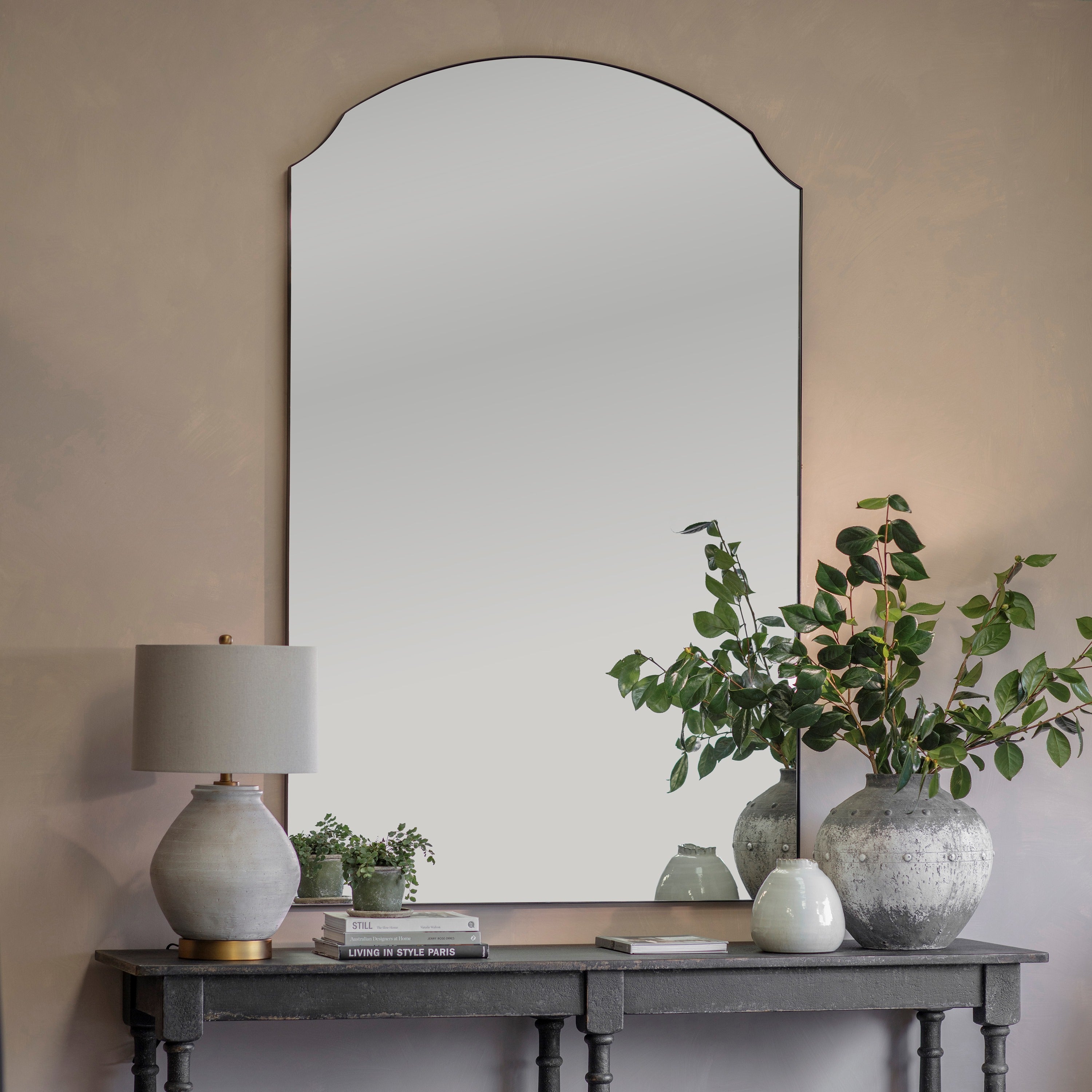 Graceful Arched TopThe Hartington Extra Large Arched Mirror makes a bold and elegant statement. Framed in black iron, its tall, structured form is softened by a graceful arched top, blending classic and contemporary design. Perfect for placing above a console or mantel, it brings height, light, and refined style to any interior.