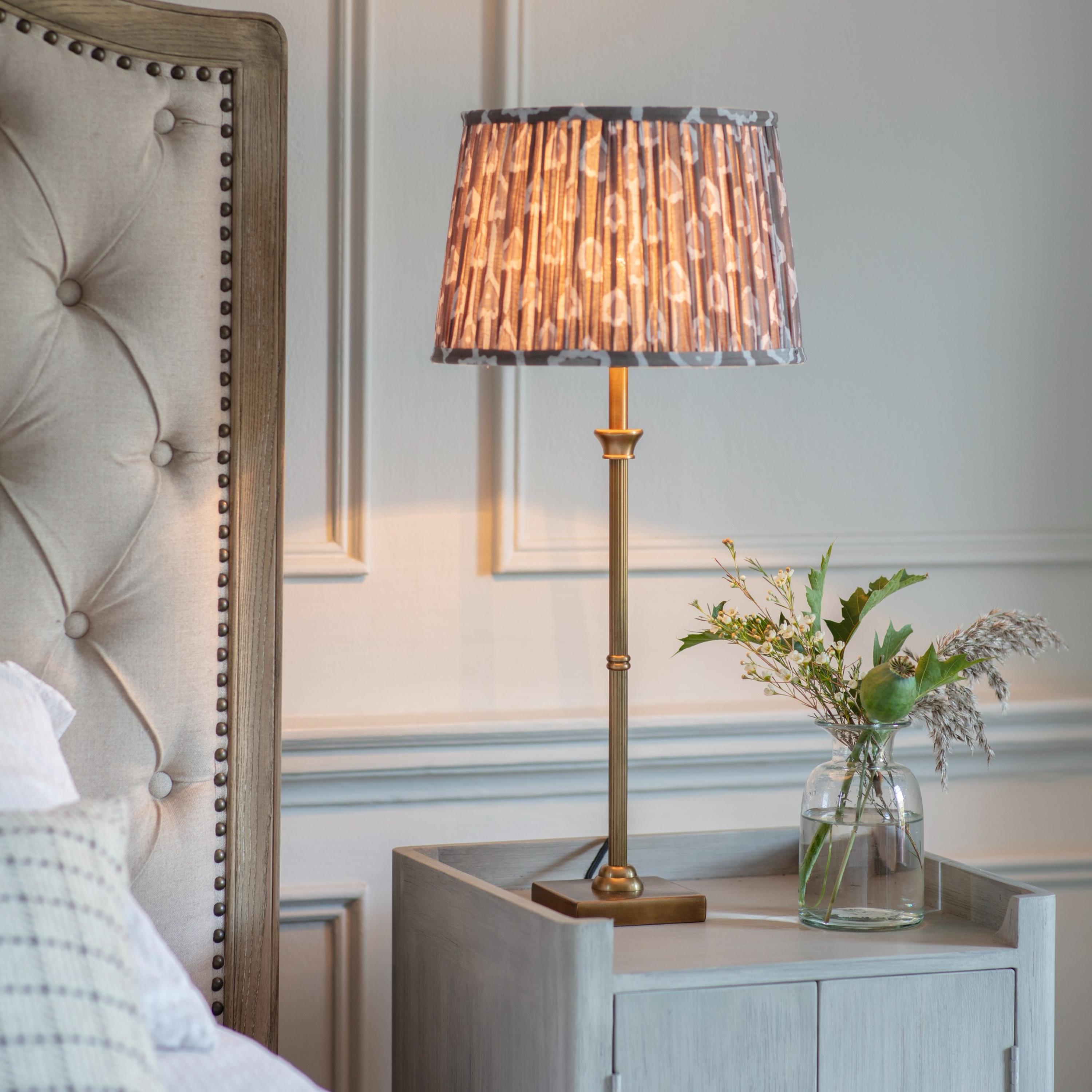 The Kirdford Reeded Table Lamp is a timeless design that exudes understated elegance. Its slender reeded stem in a warm antique brass finish creates a refined silhouette, while the pleated fabric shade softens the light for a welcoming glow. Perfect for a bedside, console, or reading nook, this lamp is versatile enough to complement both traditional and contemporary interiors.
