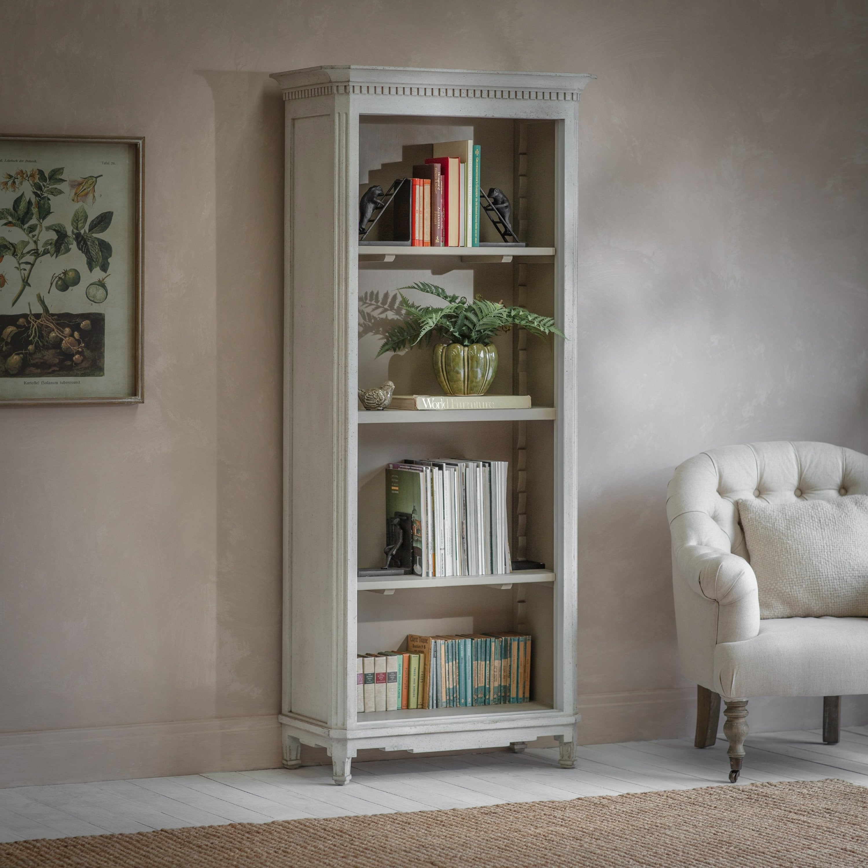 The Loumarin Bookcase brings understated French-inspired elegance to any interior. Crafted with a softly weathered finish and delicate carved detailing, it adds height, harmony and quiet character to a room. Three adjustable shelves allow you to tailor the layout to books, decorative pieces or practical storage, making it just as suited to a living space as it is to a home office. Its tall, slender form offers ample room for files, folders and everyday essentials, while the gentle patina and refined moulding highlight the craftsmanship behind the design. A versatile, beautifully made piece that elevates both style and function.