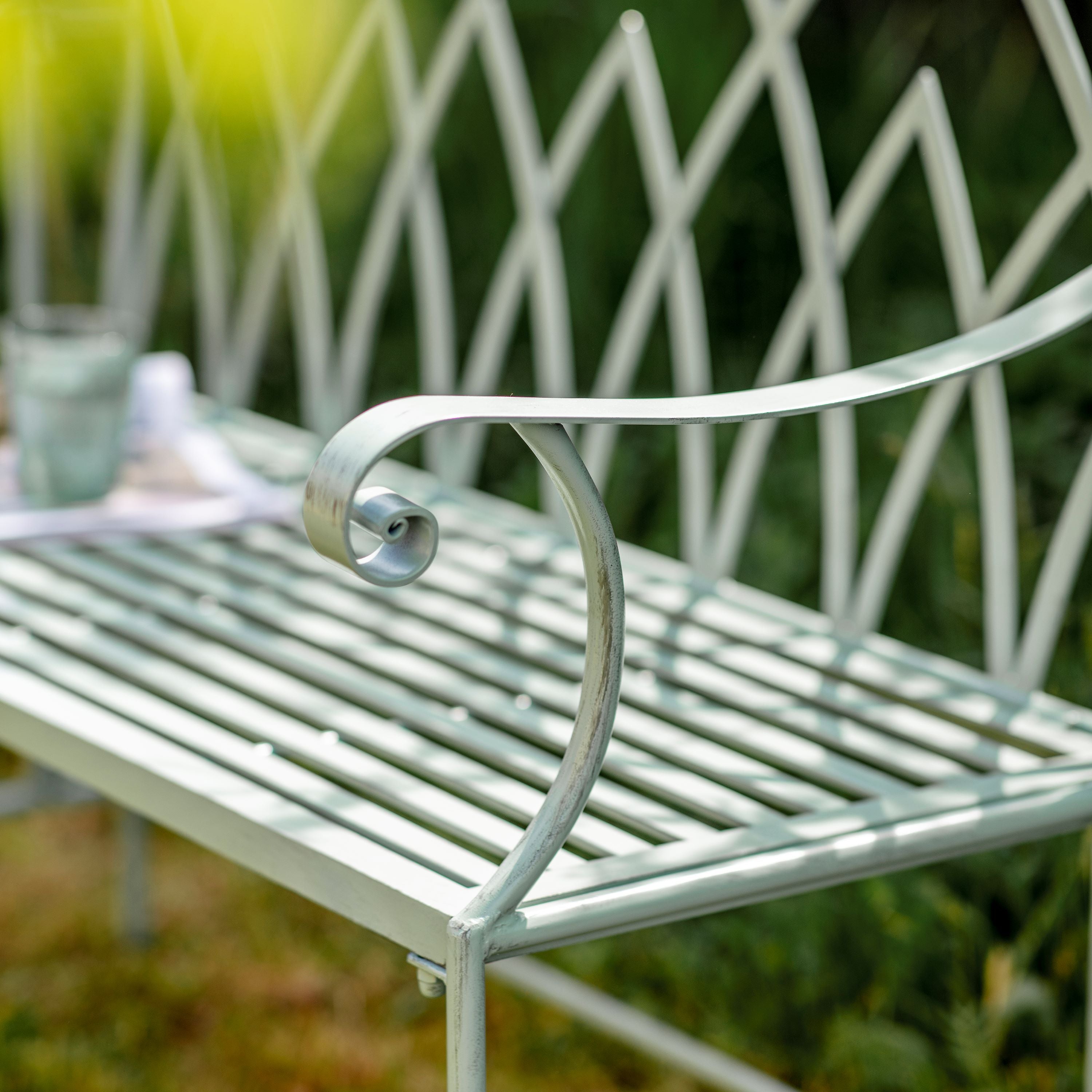 Classic Slatted DesignFinished in a calming sage green, the Lustleigh Bench blends beautifully into natural surroundings. Its decorative backrest and curved arms offer a timeless, tranquil feel — ideal for adding grace and comfort to garden paths, terraces, or courtyard spaces.