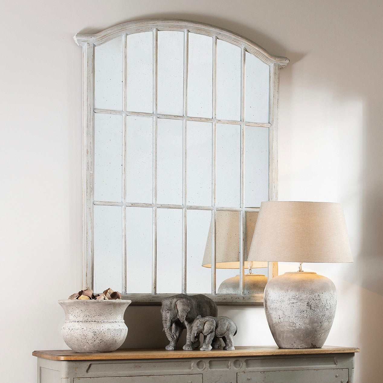 Hand FinishedThe Wilton French Panel Mirror is a unique and stylish piece that adds a touch of drama to any space. Its arch and fence panel-style design mix together so many different styles and ideas, making it a truly one-of-a-kind piece destined for your home!