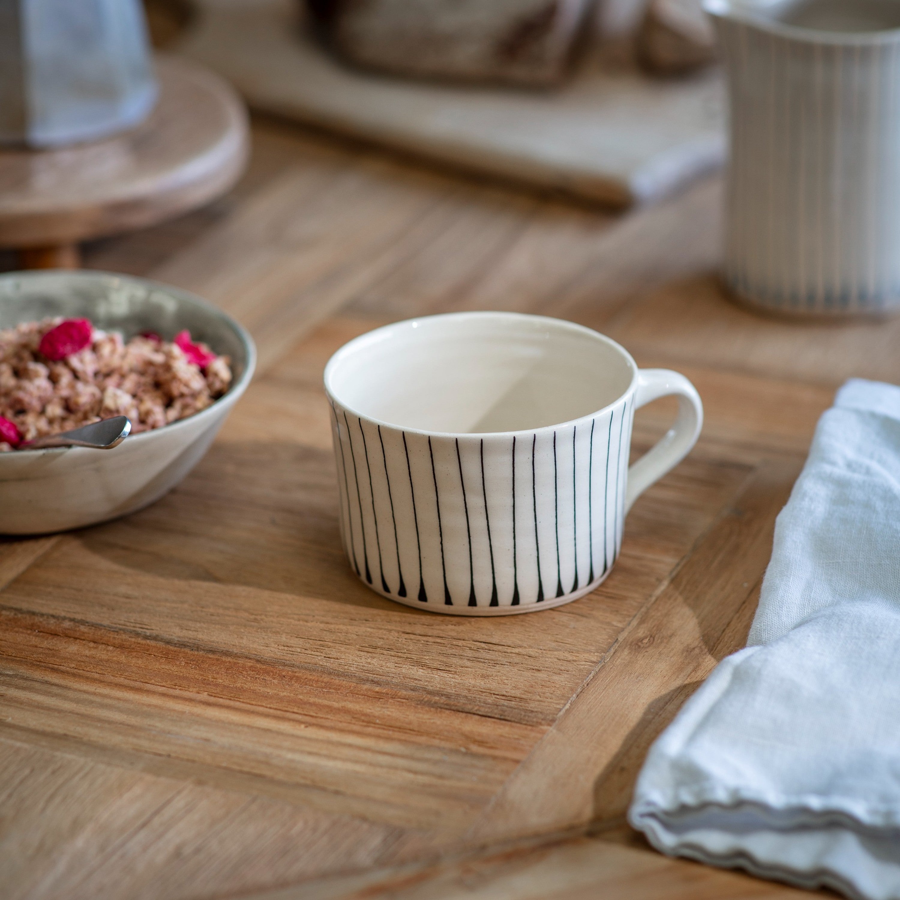 This Studio Line Squat Mug is defined by its rounded silhouette and smooth, contemporary hand-painted stripe detailing. Each mug is handmade, giving it natural movement and subtle character. Comfortable in the hand and beautifully simple, it’s an everyday essential that blends modern design with artisanal warmth.