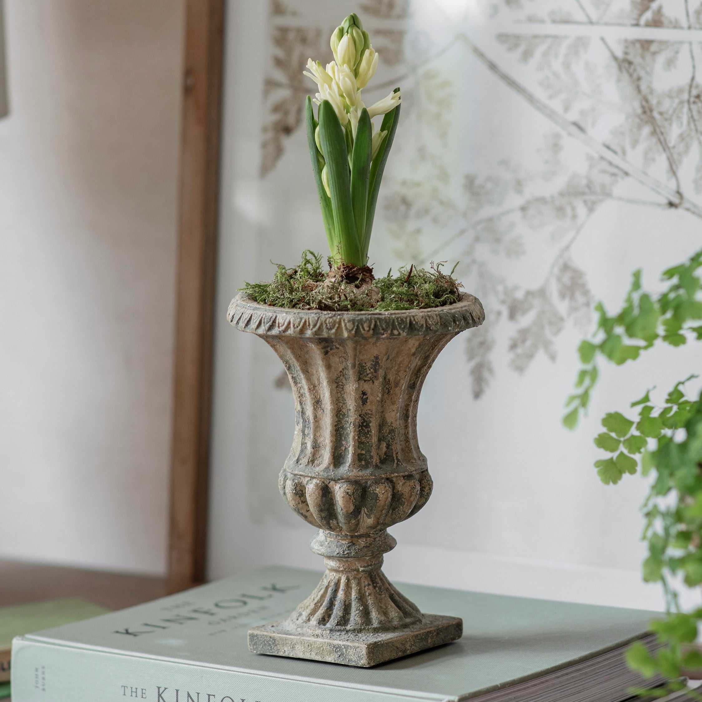 The Yarnton Small Pedestal Planter is a beautifully detailed piece with a timeless, classical charm. Featuring an elegant fluted design and a weathered stone-effect finish, this petite planter sits on a sturdy square pedestal base. Perfect for displaying small plants, bulbs, or decorative arrangements, it brings a touch of vintage elegance to shelves, tables, or windowsills, both indoors and out.